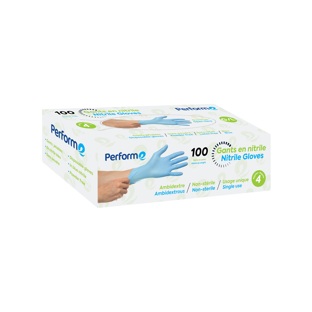 Gants de nitrile jetables bleu 4 mil grandeur large. 100 gants par boîte.