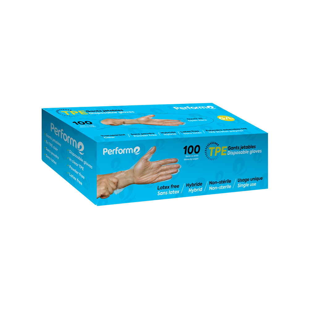 Gants de TPE Jetables transparent grandeur Large. 100 gants par boîte.